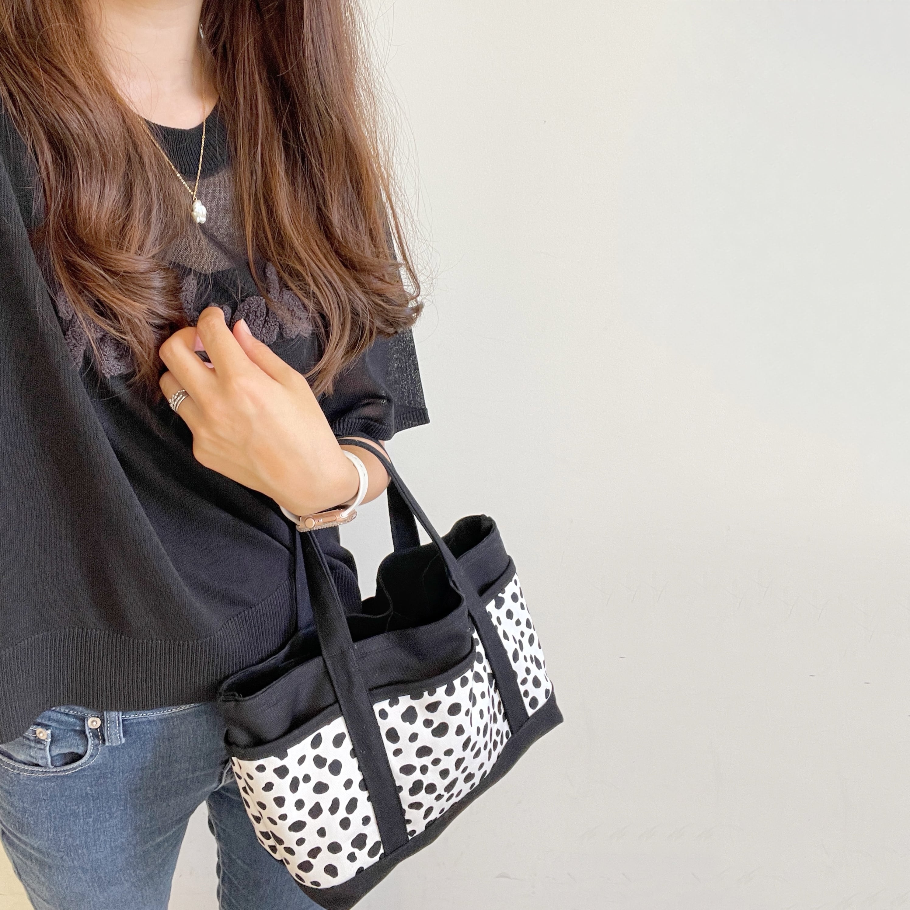 【数量限定/受注生産】11ポケット/ブラック×ダルメシアン/帆布マルチバッグ